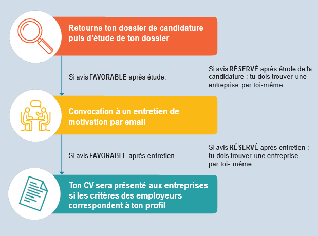 Il est plus difficile de trouver une entreprise d'accueil qu'un centre de formation. Tes efforts doivent par conséquent se concentrer sur ce point.